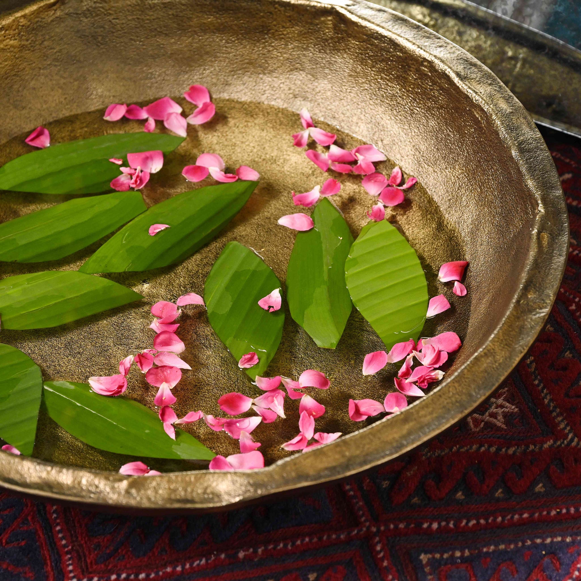 The Auraa Hammered Centrepiece Bowl combines traditional craftsmanship with elegant design, featuring a vintage brass finish that adds warmth and character to any setting. Its intricate hammered detailing enhances its texture, making it a striking focal point for your dining table or living room. This versatile urli-style bowl offers both decorative appeal and functional use, perfect for presenting flowers, fruits, or as a standalone statement piece that elevates your home décor. Expertly crafted to blend heritage aesthetics with contemporary style, it is a timeless addition for refined interiors.