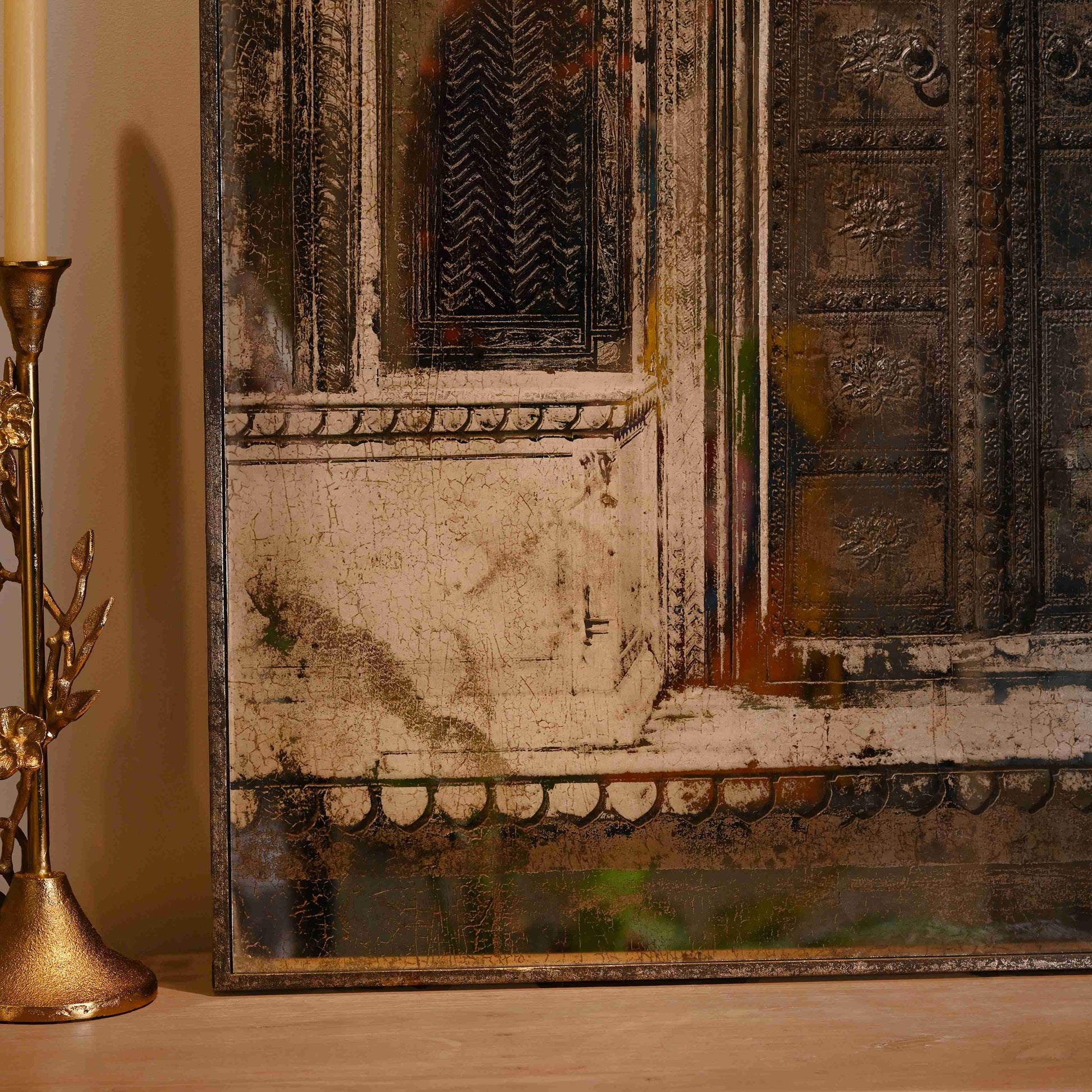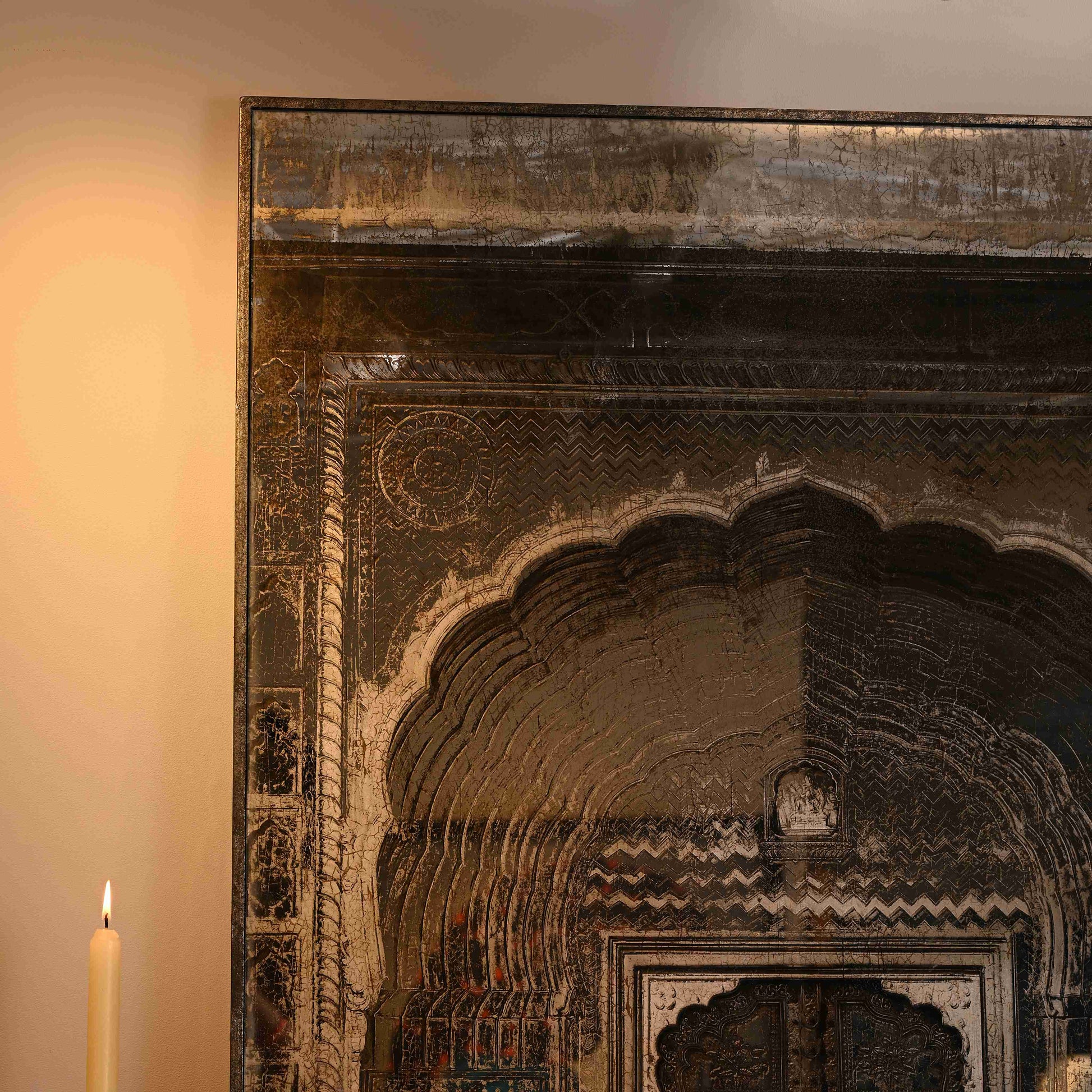 Dwaar Wall Art captures the grandeur of traditional Rajasthani haveli entrances with contemporary flair. This striking piece combines foil and mirror elements to create dimensional depth and luminous reflections that transform your entryway. The intricate detailing evokes the ornamental doorways of historic palaces, bringing architectural heritage into your modern home. Perfect for creating a sophisticated focal point that celebrates Indian craftsmanship and timeless design aesthetics.