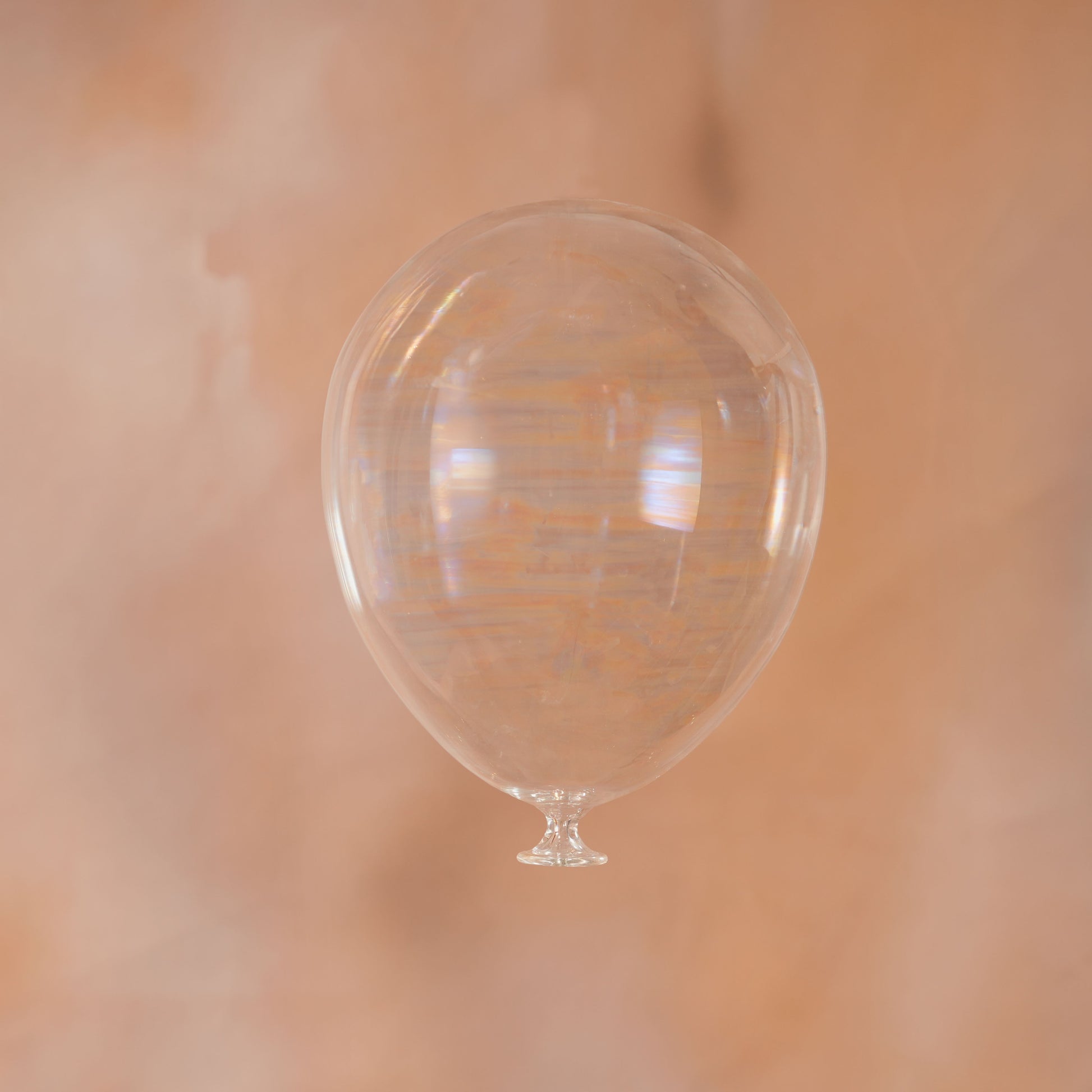 A handcrafted glass balloon sculpture in a four color options and a rich finish, smooth and luminous in form. Playful yet refined, it adds a pop of colour and whimsy to shelves, consoles, or curated displays. A striking accent piece for eclectic, contemporary, or art-forward interiors. Hang them where it catches the light!