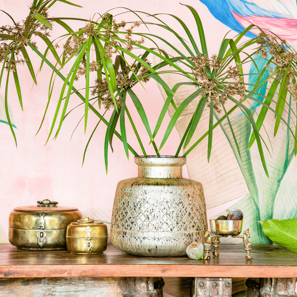 - Crafted with meticulous attention to detail, this vase features a sleek silhouette inspired by the iconic kalash shape, which symbolizes abundance and prosperity in Indian culture.