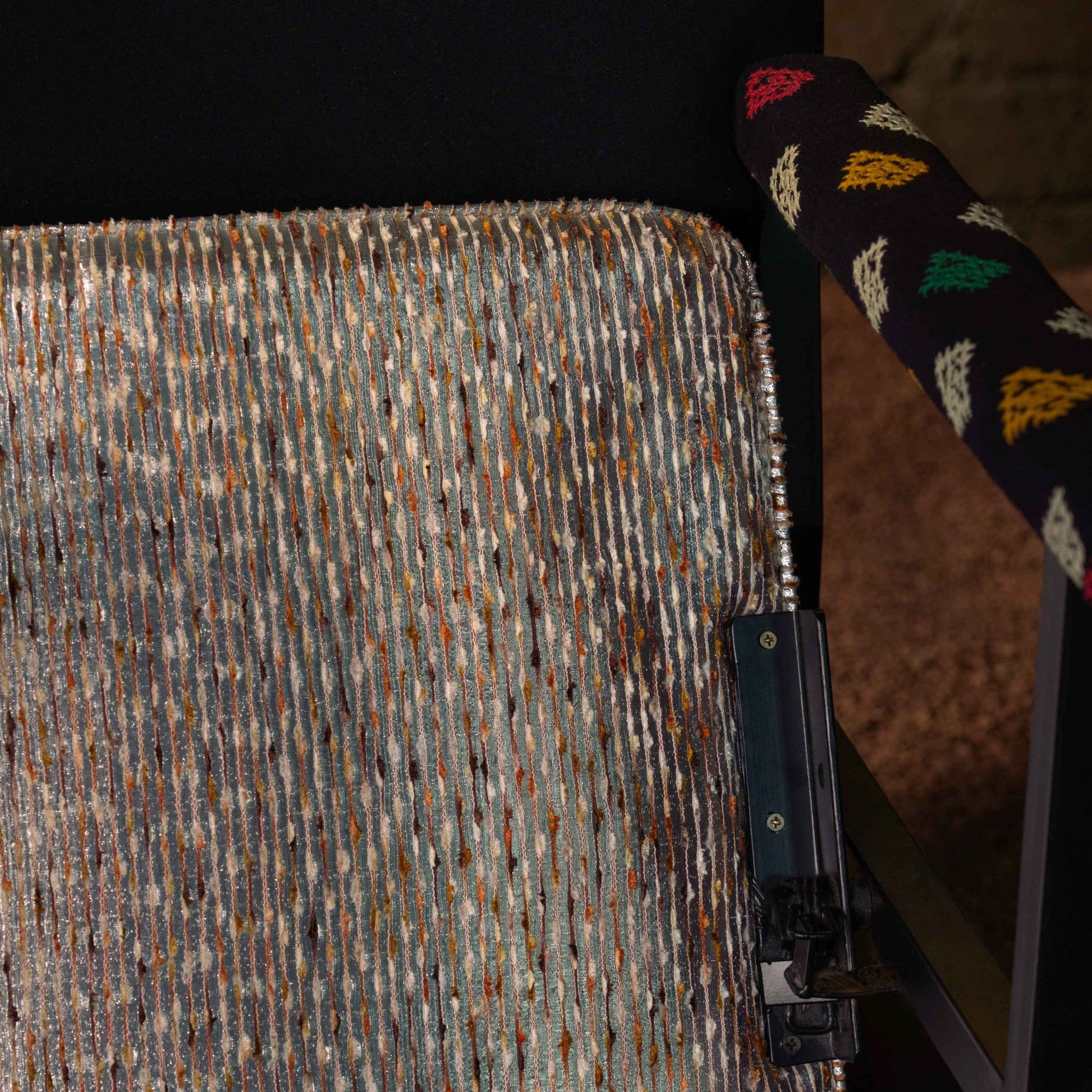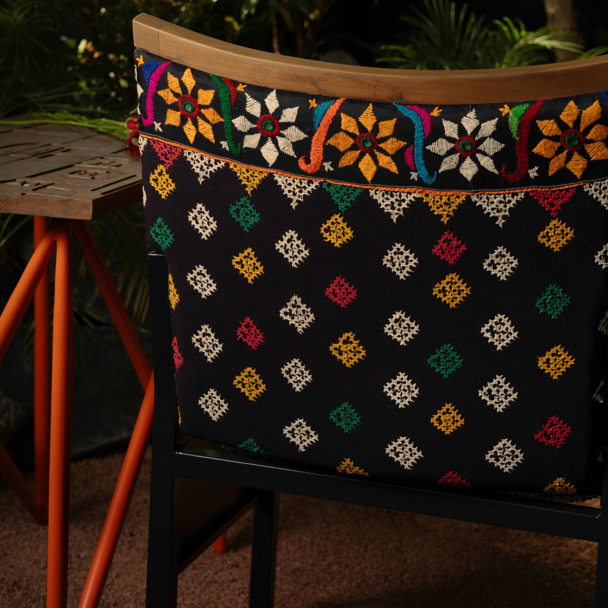 - There is dazzle and glamour in every detail, with the fabrics being a confluence of various regions, much like the Hindi movies themselves… the seat is made from a shimmery vintage fabric, while the back features rich embroidery practiced by the Rabari community in Kutch.