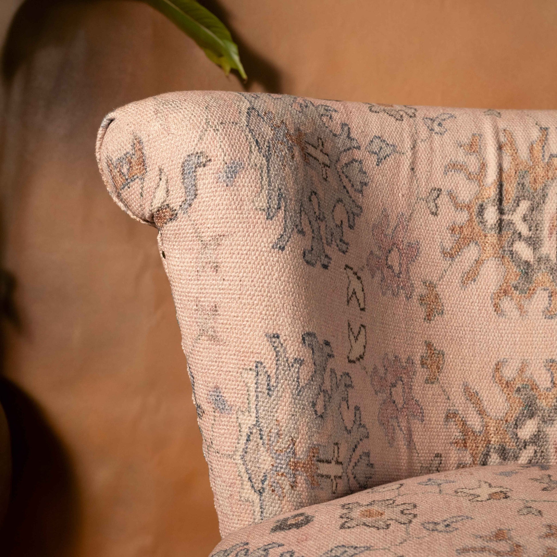 The Spiti Chair brings understated elegance to any room with its soft pink textured fabric adorned with a refined print. This accent piece combines comfort with contemporary design, featuring a structured silhouette that complements both modern and traditional interiors. Perfect for creating a serene reading nook or adding a touch of sophistication to your bedroom or living space. The tactile fabric invites you to settle in, while its neutral-leaning palette ensures effortless coordination with existing décor.