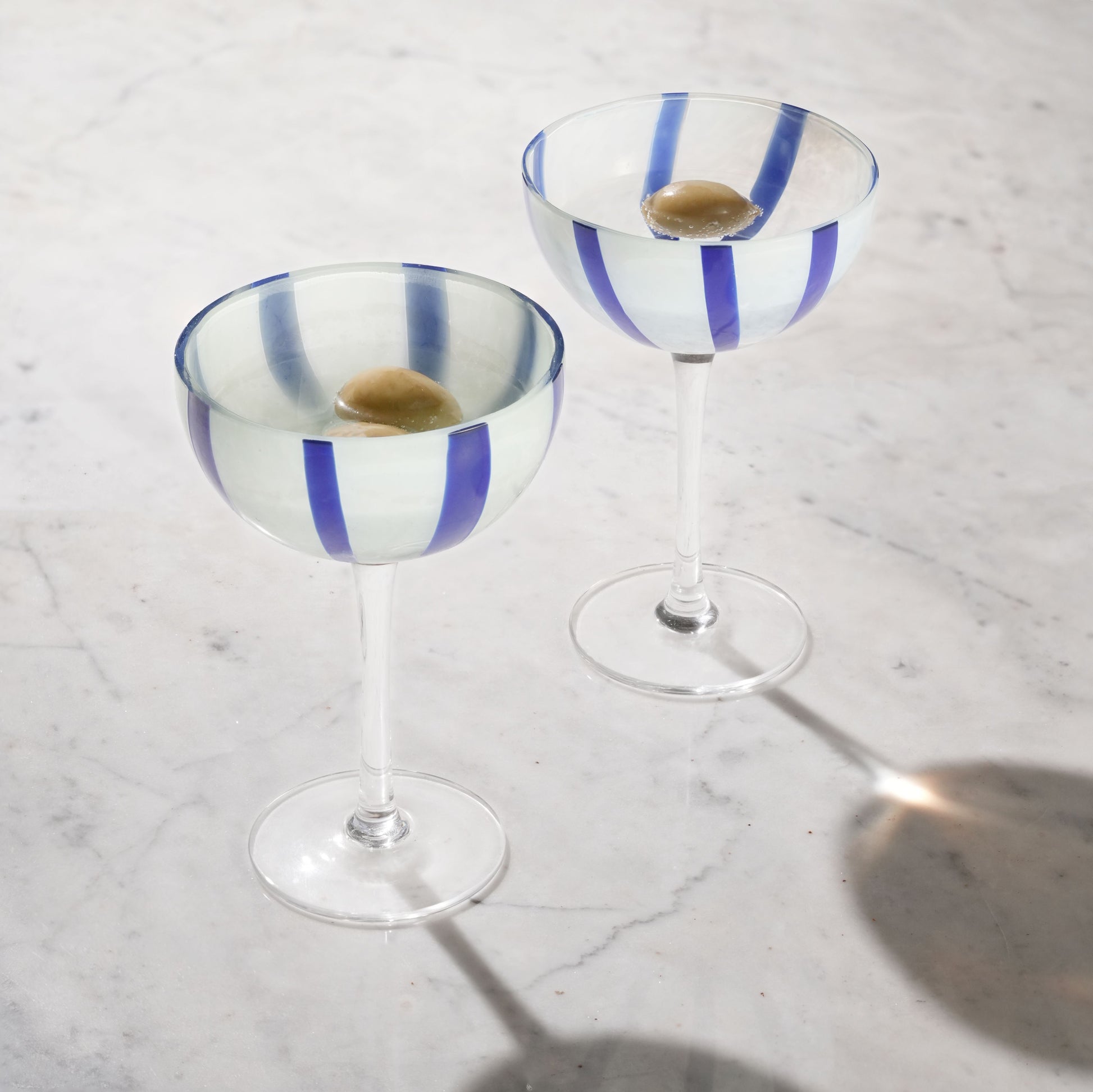 Elevate your cocktail experience with this striking Swirl Glass, designed for the discerning mixologist. The distinctive blue stripe pattern adds visual sophistication to every pour, transforming ordinary drinks into Instagram-worthy creations. Perfect for serving classic coupes, refreshing bar cocktails, and innovative mixed drinks, this versatile glassware brings both style and functionality to your home bar or professional establishment. The elegant swirl detailing catches light beautifully, enhancing the presentation of your favorite libations while maintaining the structural integrity needed for everyday use.
