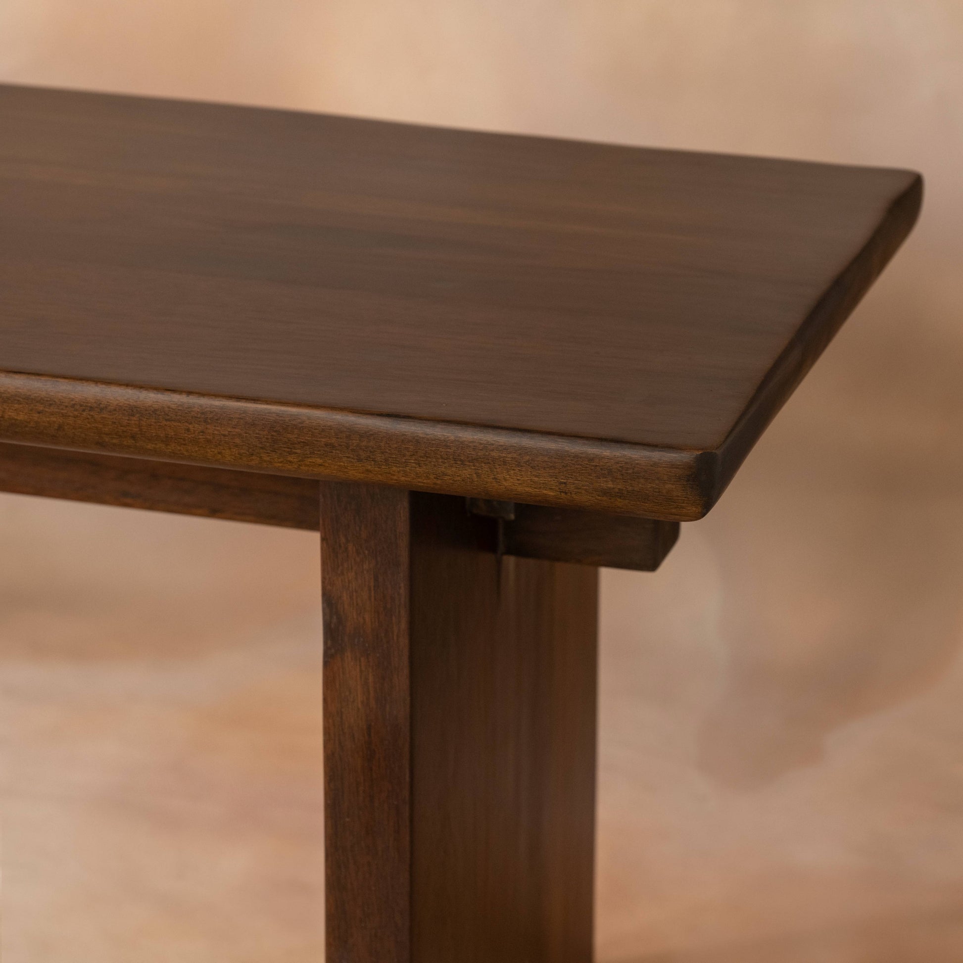 Introducing Twister Wooden Bench. Crafted from luxurious teakwood, its clean, simple lines exude timeless elegance. The slightly irregular shaped top adds a touch of sophistication, making it an ideal choice for any classic design. Whether you use it as a dining bench, or as living room seating, your seating experience is sure to be elevated with Twister Wooden Bench.