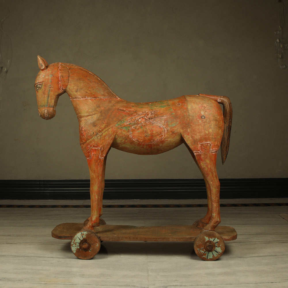 Revamp your home with our charming, vintage wooden pony. This delightful artefact captures the magic and innocence of childhood, adding a touch of whimsy and nostalgia to any room. Add a touch of wonder and nostalgia to your living space with our enchanting, vintage wooden pony. Reminisce about those carefree, playful days of youth every time you look at it.