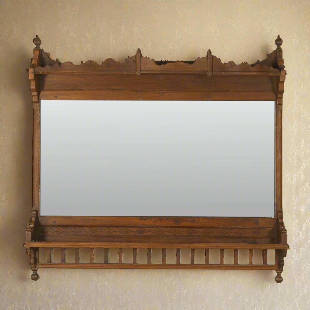 Vintage Mirror Frame with Carved Shelf