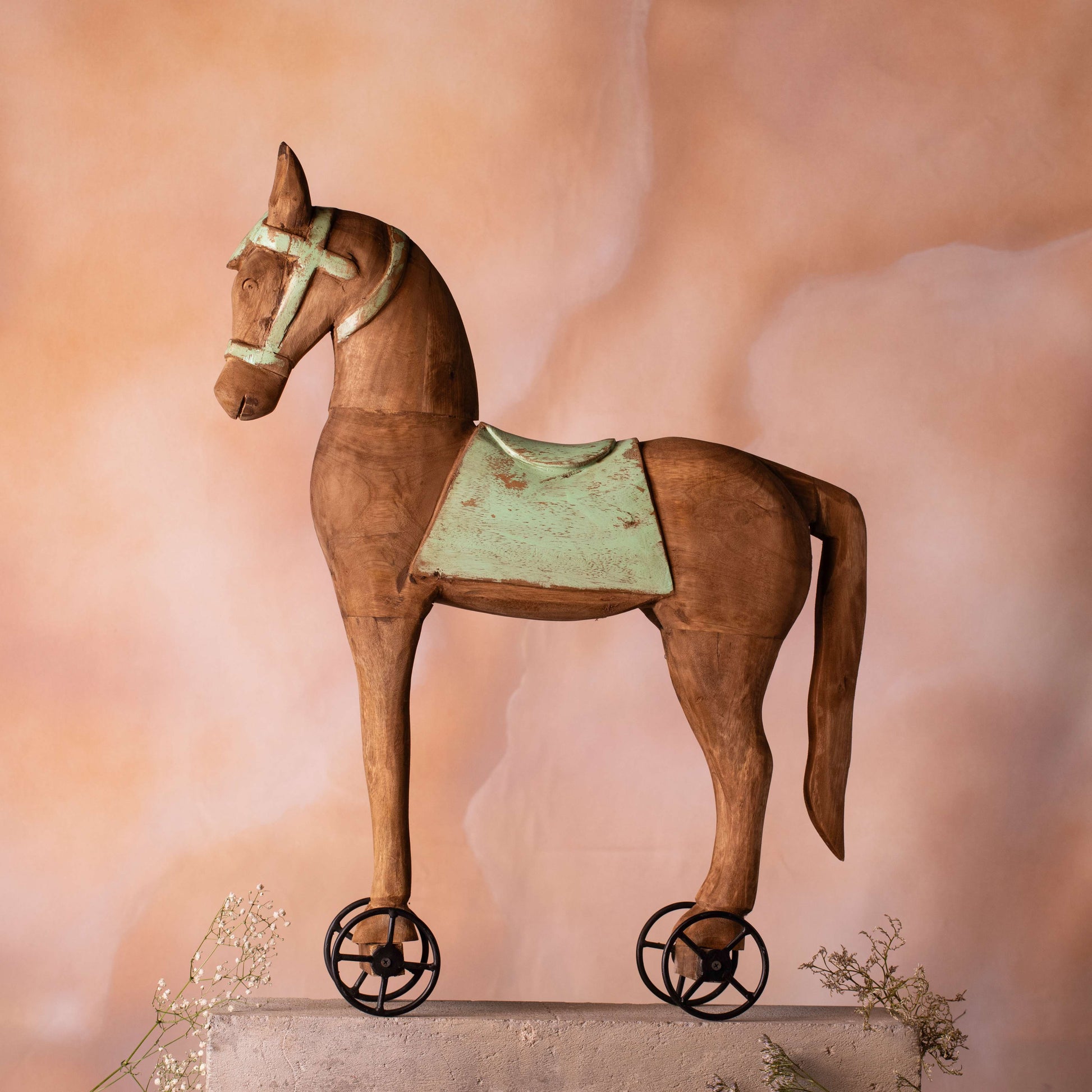 - Join in on the fun with our Rodeo Horse on Wheels - the perfect accent piece to add some personality to your space! Whether you use it to liven up your entryway or as a conversation starter on your console table, this handmade mango wood masterpiece is sure to make an impact.