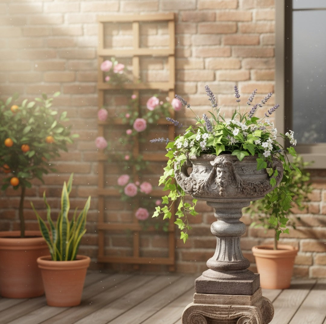 Indulge in luxurious plant care with our Zeus Polyresin Pot. Crafted from premium polyresin, this planter is exquisitely designed to elevate your gardening experience. The sturdy material ensures durability while its intricate Zeus-inspired details add an artistic touch to your home decor. Let your plants thrive in style.